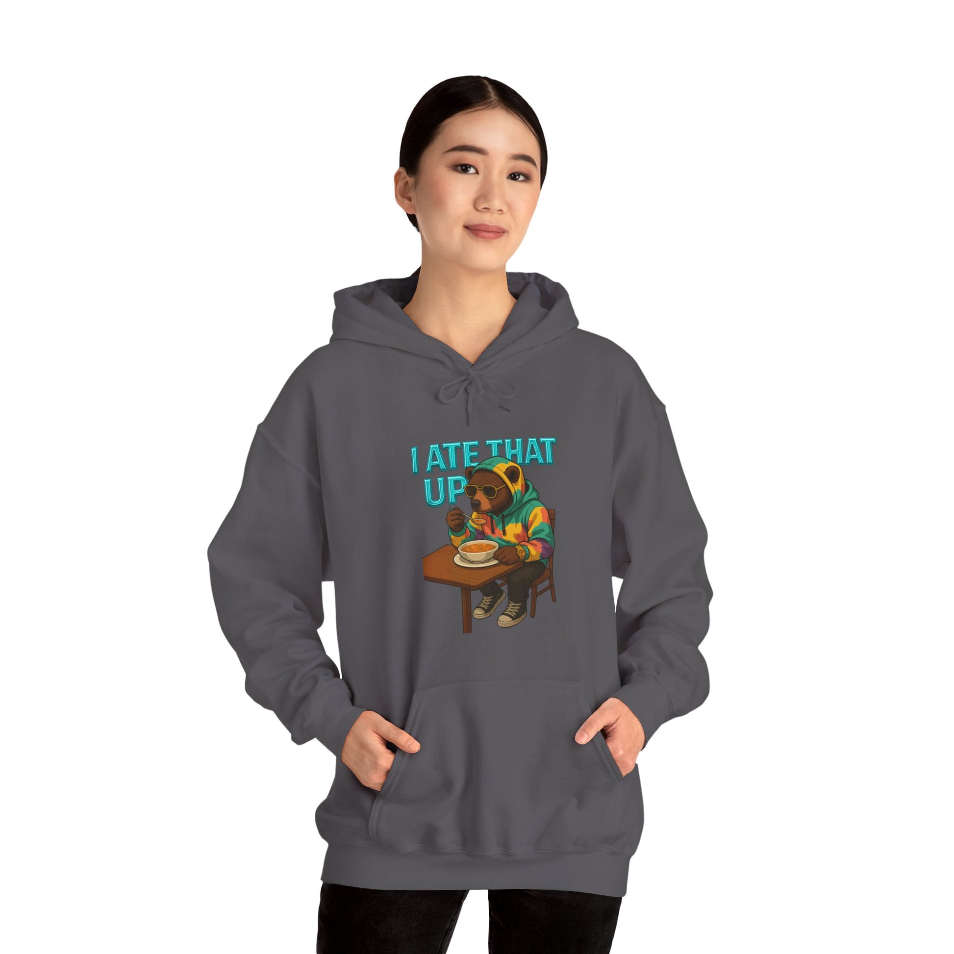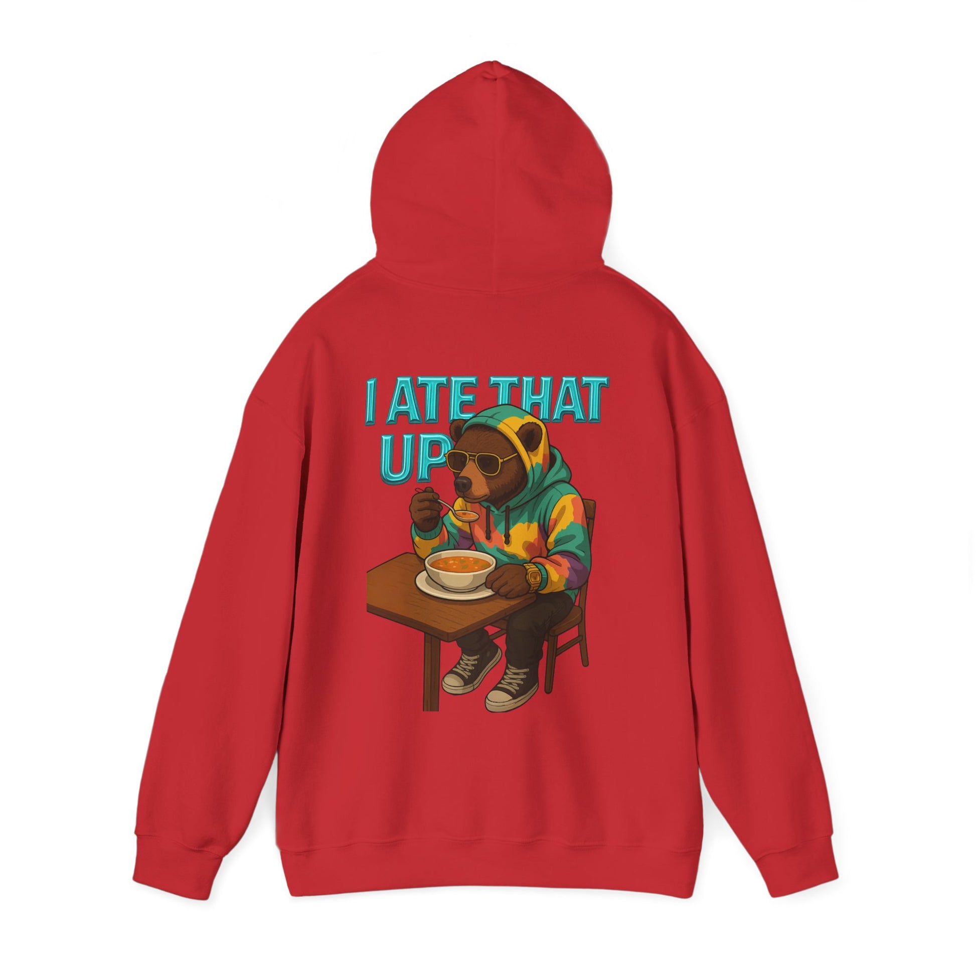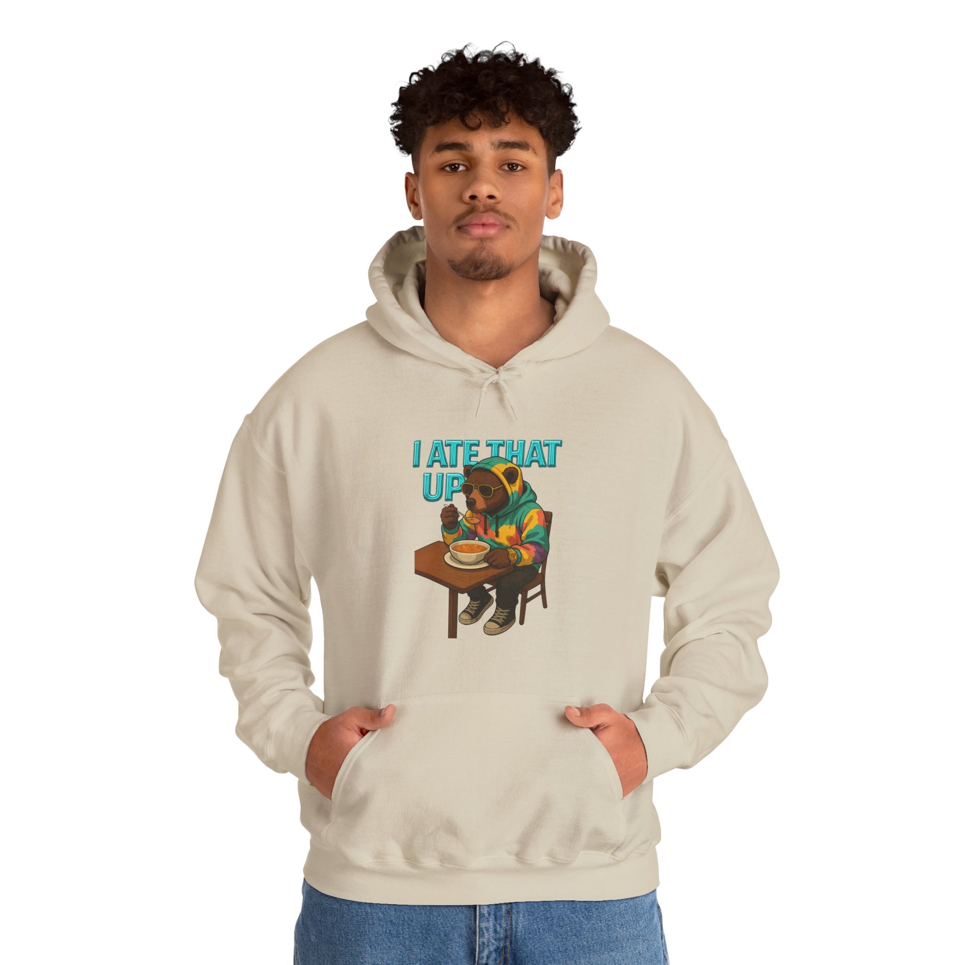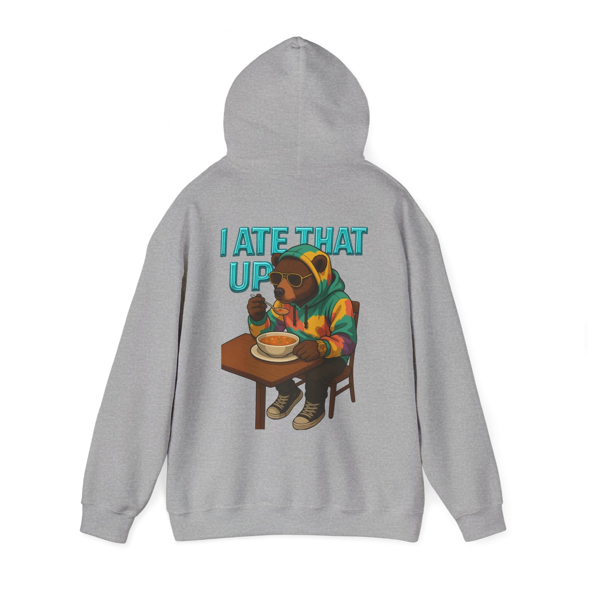 Ate That Up Playful Bear Hoodie, Funny Animal Sweatshirt, Gift for Food Lovers, Cozy Bear Apparel, Unique Unisex Pullover, Fun Statement Top