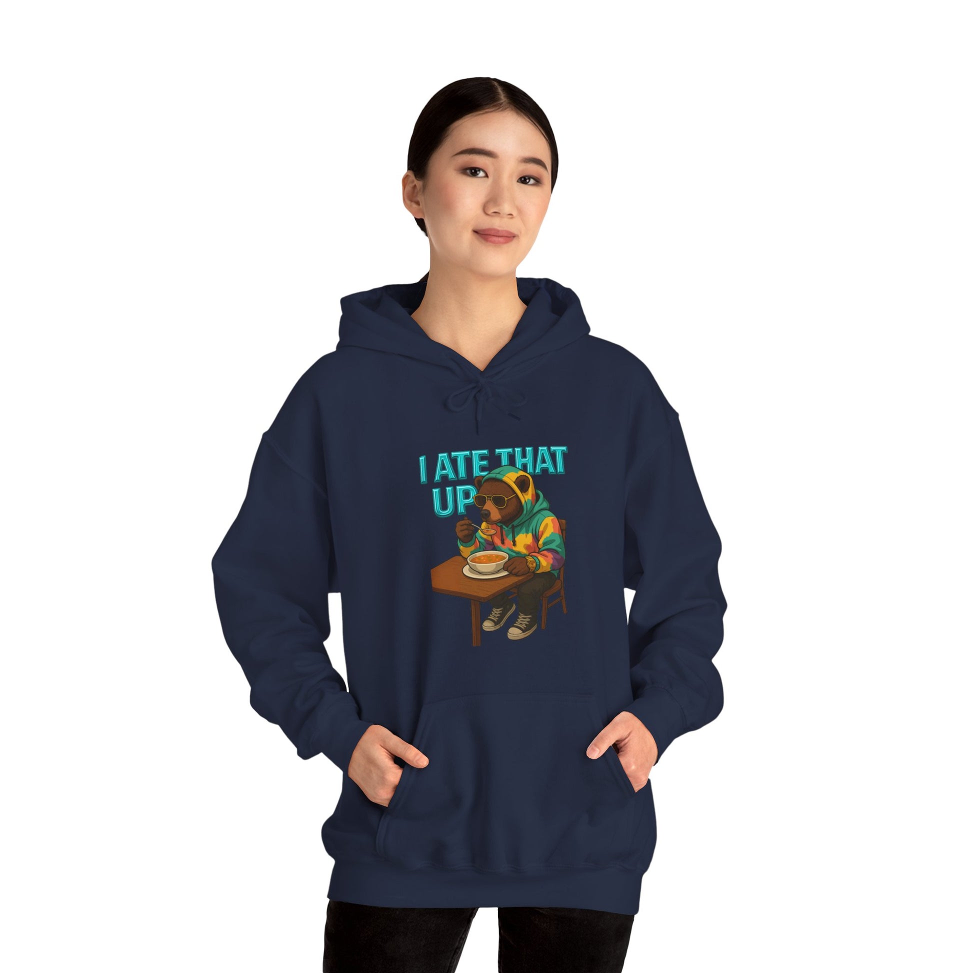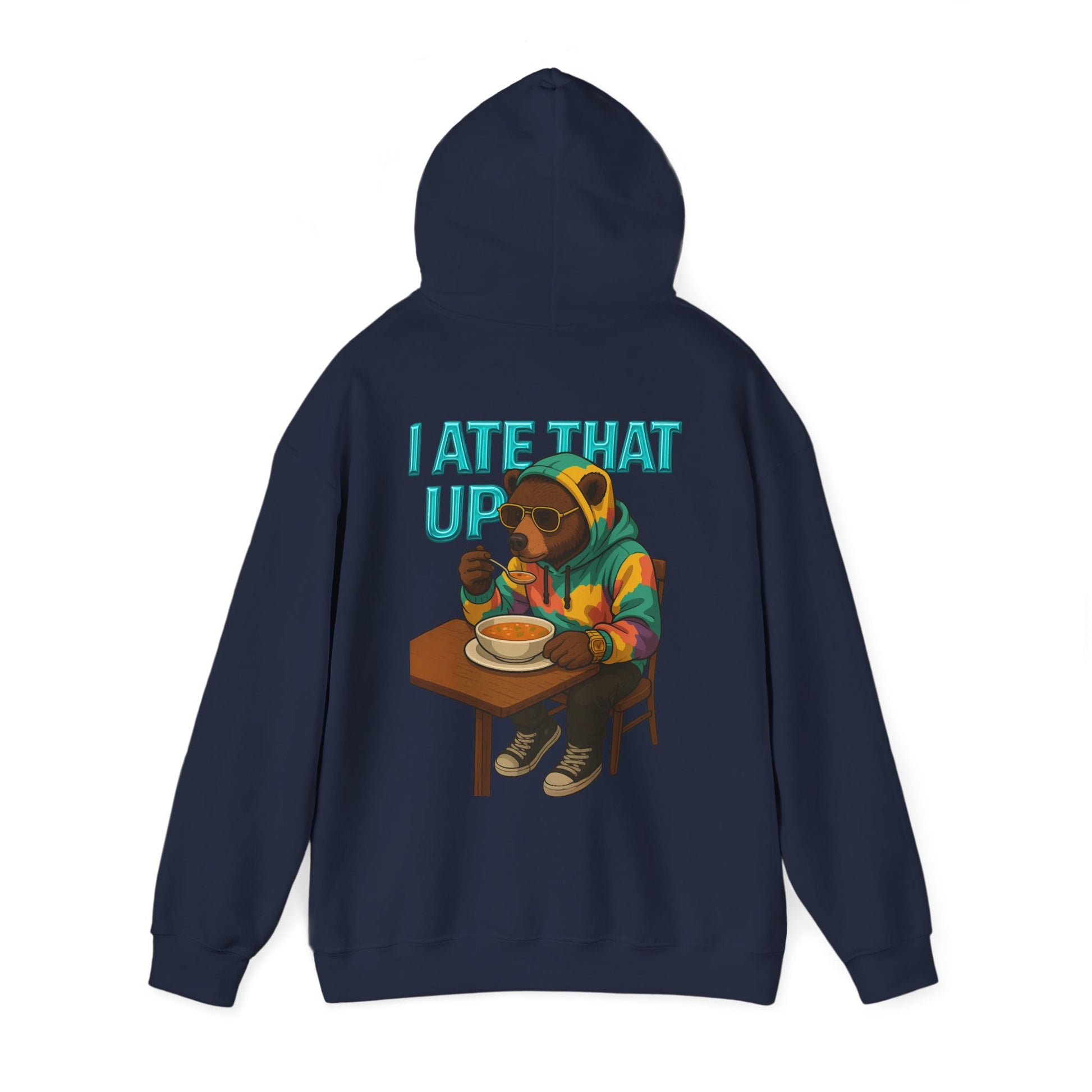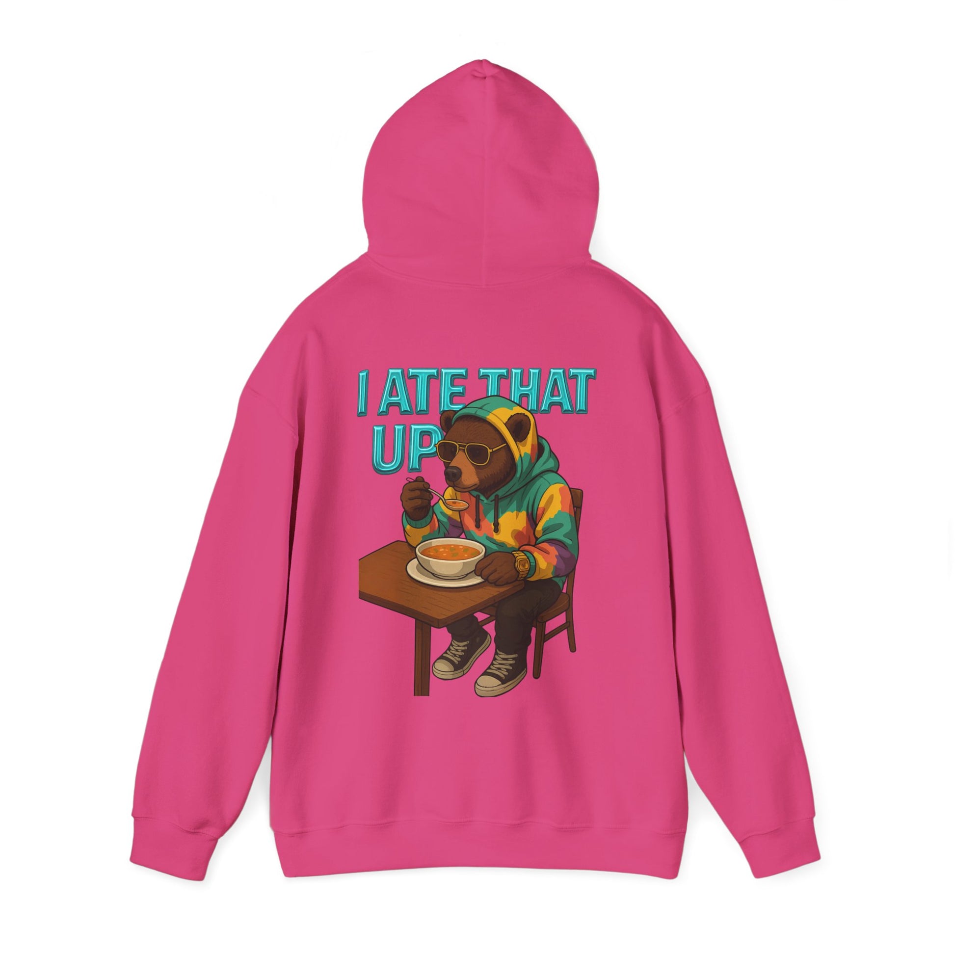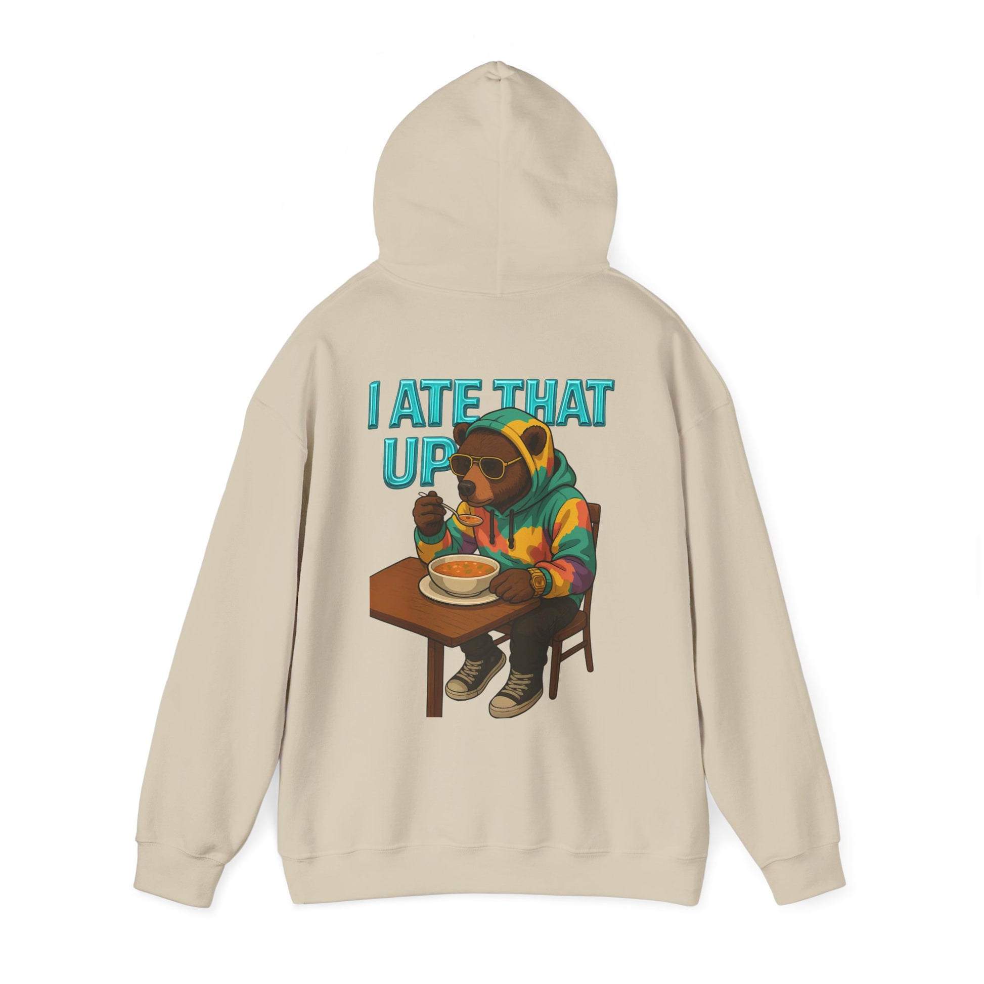 Ate That Up Playful Bear Hoodie, Funny Animal Sweatshirt, Gift for Food Lovers, Cozy Bear Apparel, Unique Unisex Pullover, Fun Statement Top