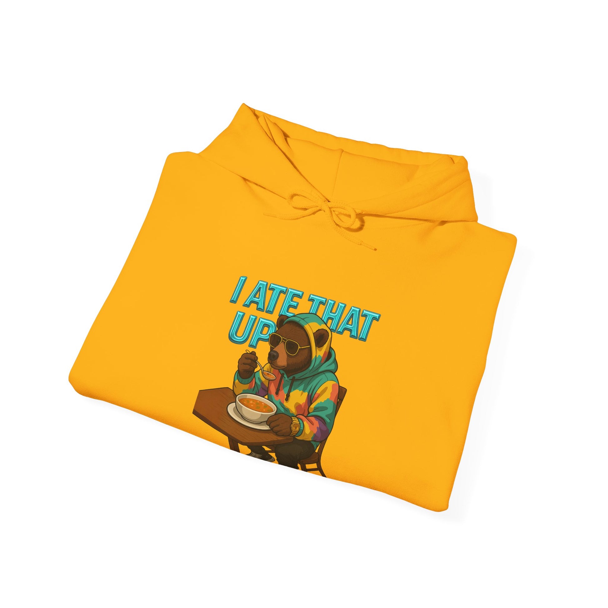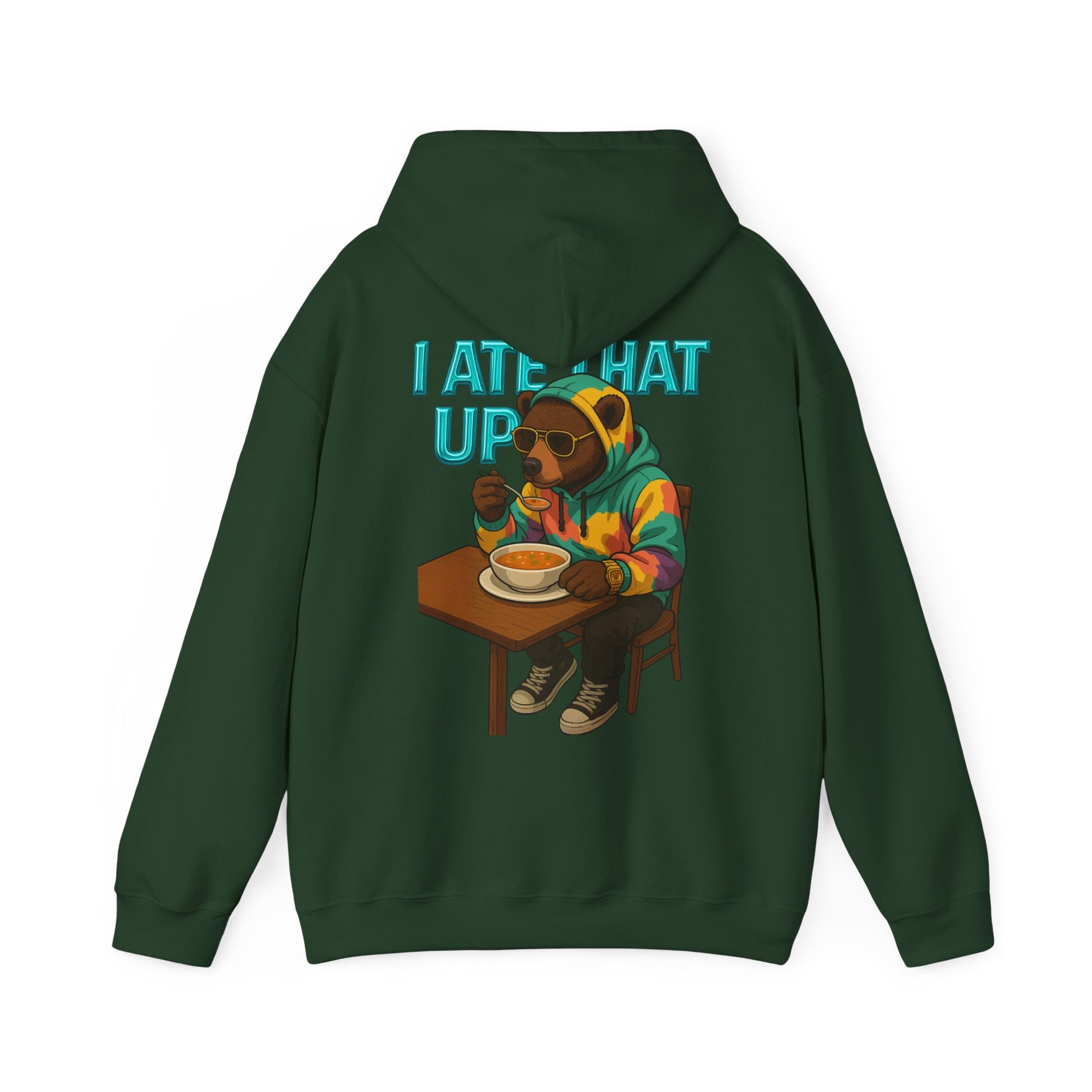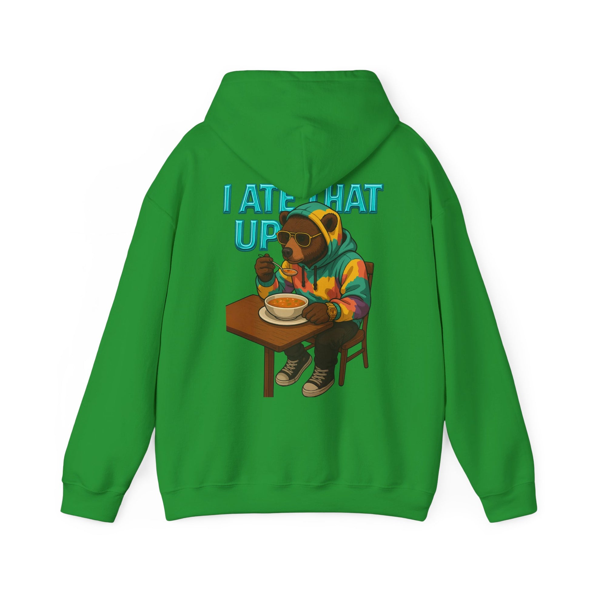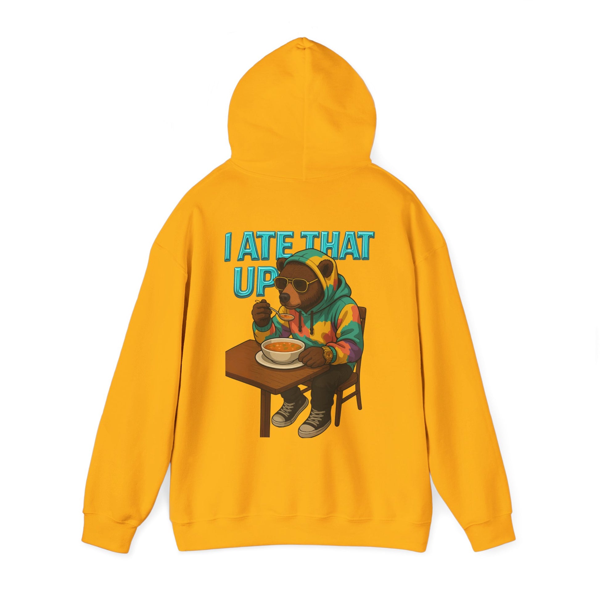 Ate That Up Playful Bear Hoodie, Funny Animal Sweatshirt, Gift for Food Lovers, Cozy Bear Apparel, Unique Unisex Pullover, Fun Statement Top