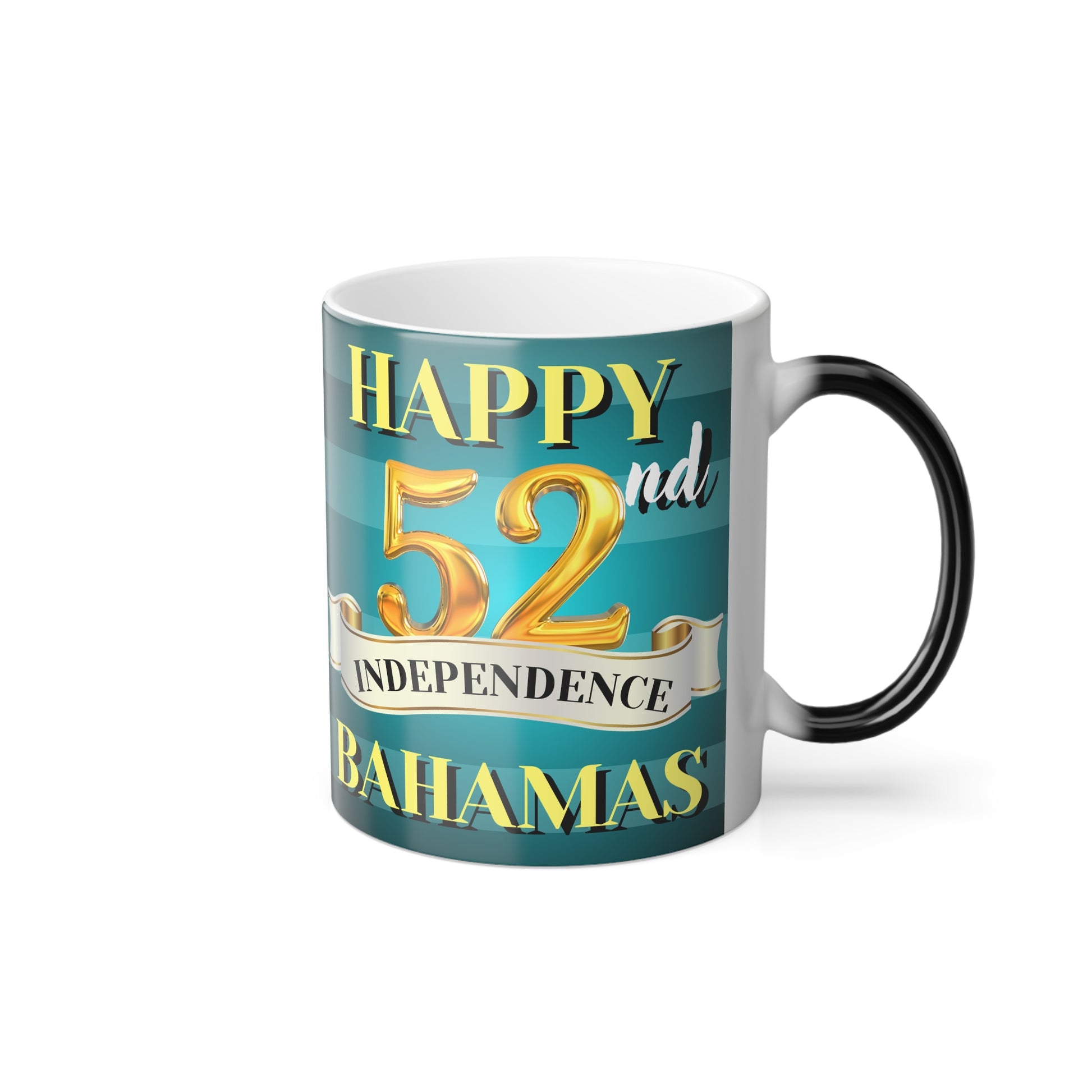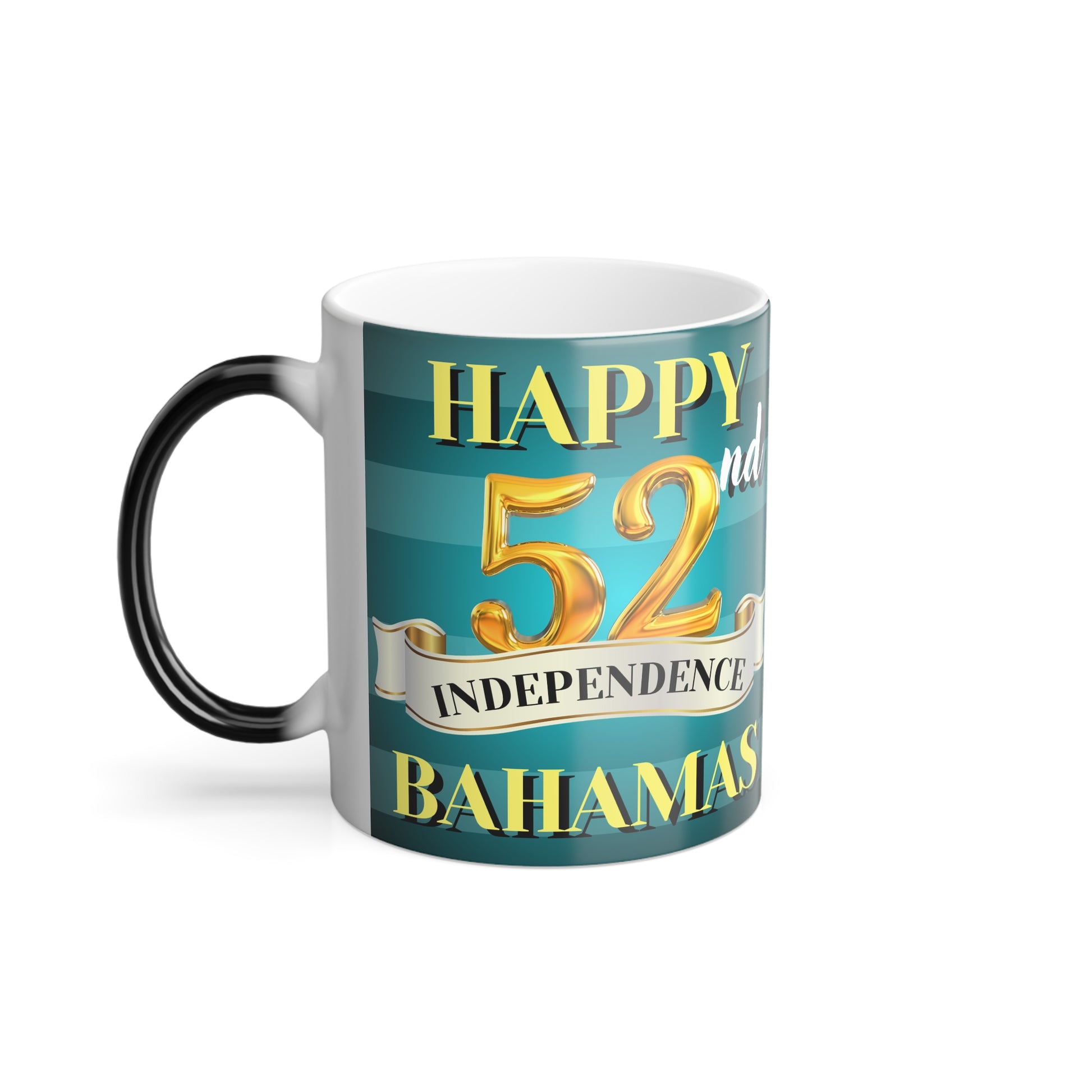 Happy 52nd Independence Blue Stripe Bahamas Color Morphing Mug - Happy Independence Day Gift, Custom Coffee Cup, Fun Drinkware for Bahamas Celebrations, Holiday Memento, Unique Present