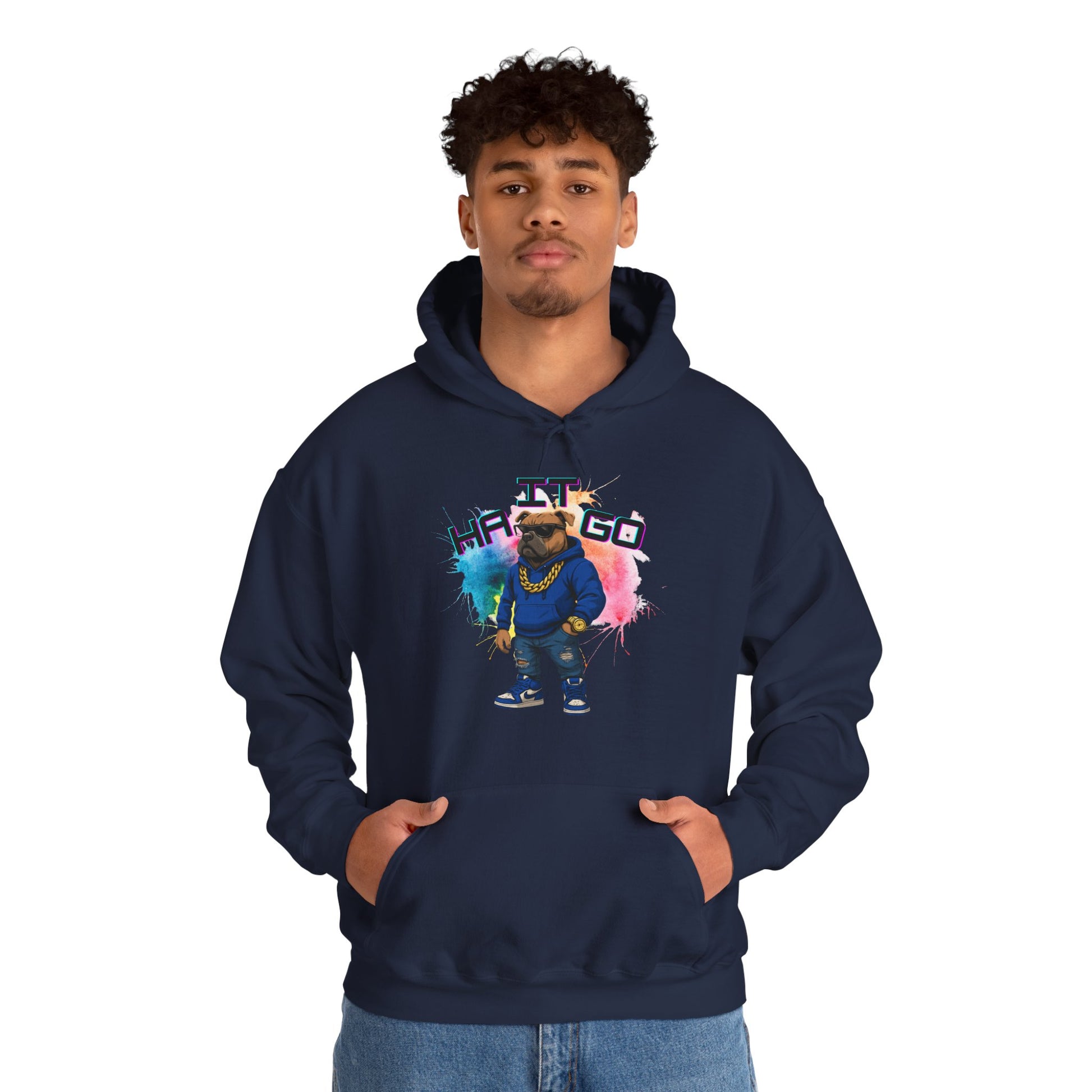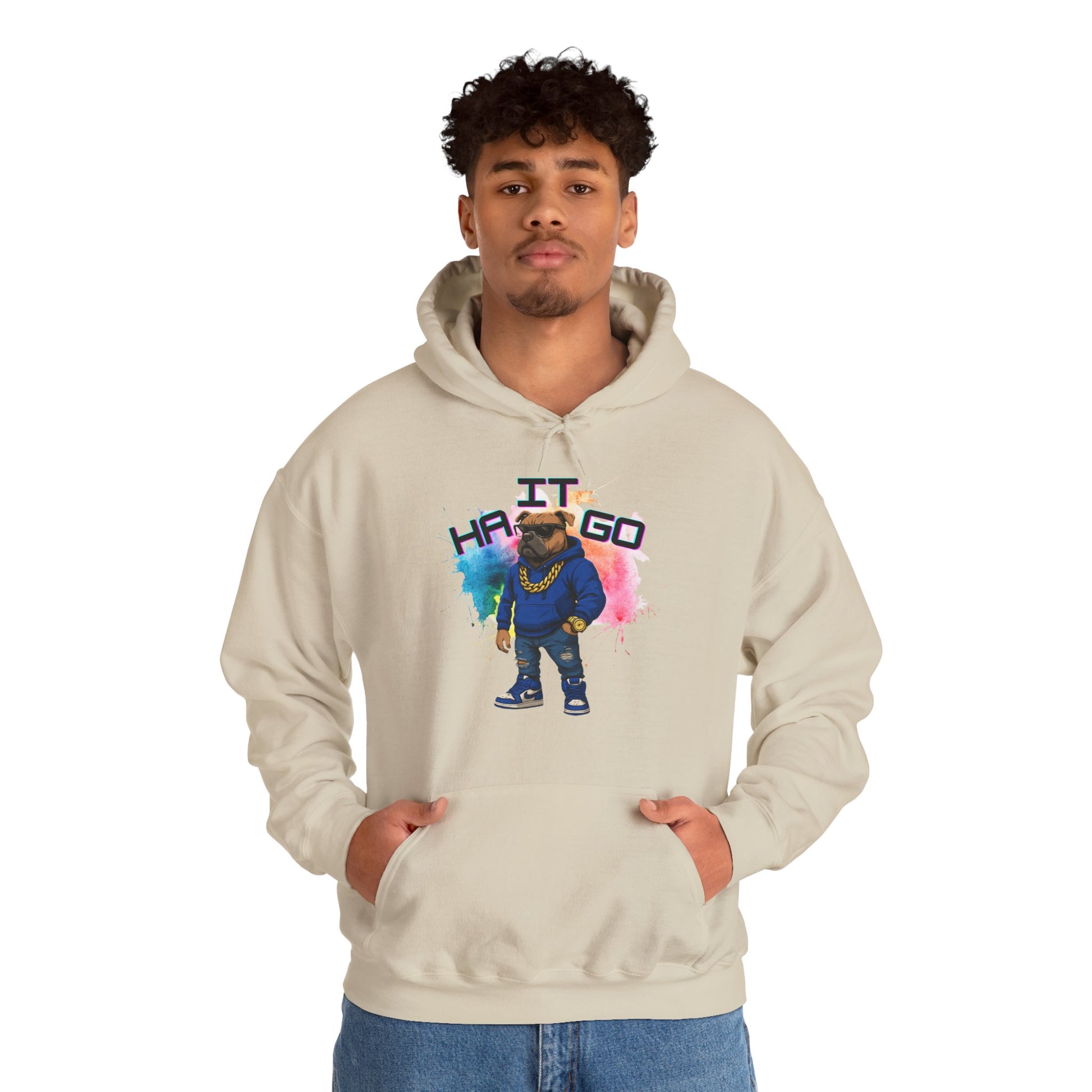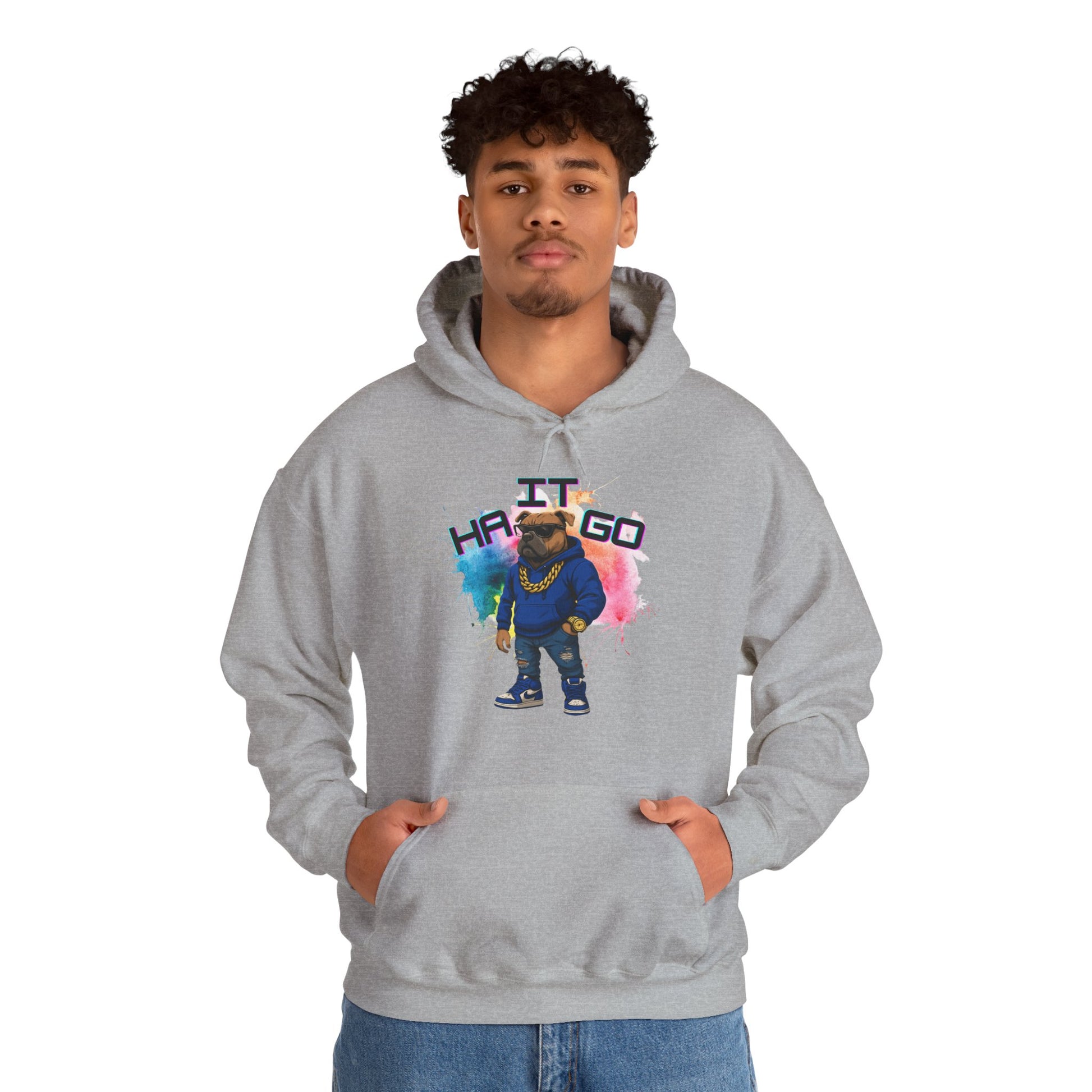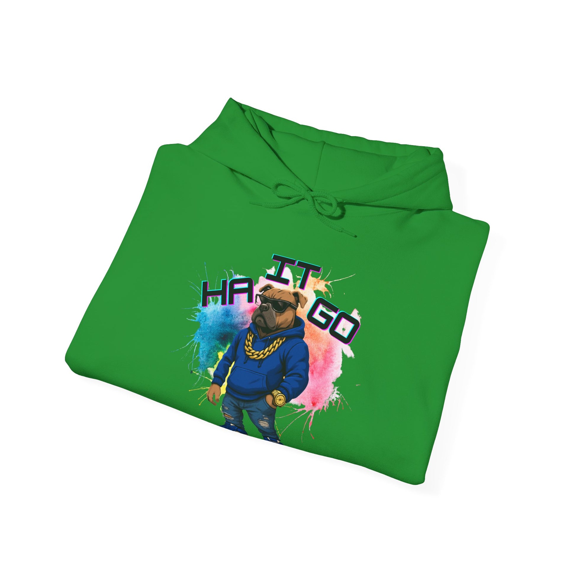 Ha It Go Cool Hipster Dog Hoodie, Streetwear Unisex Sweatshirt, Funny Pet Lover Gift, Casual Stylish Pullover, Colorful Graphic Sweatshirt