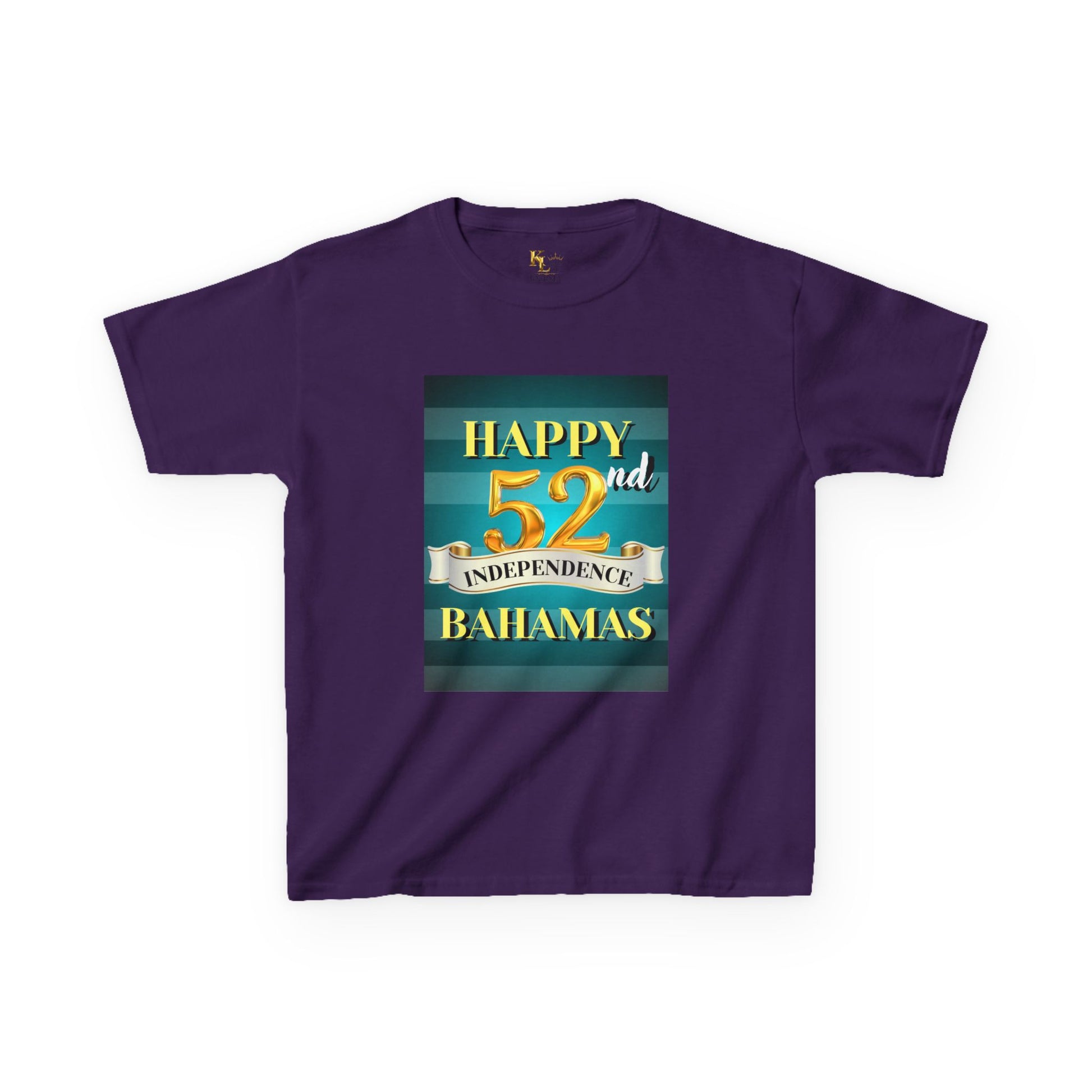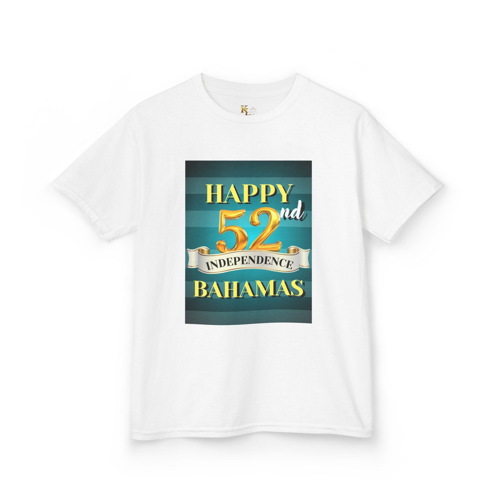 Happy 52nd Independence Blue Stripe Bahamas Kids Tee, Fun Kids Shirt, Celebration T-Shirt, Birthday Gift, Summer Apparel, Independence Day Outfit