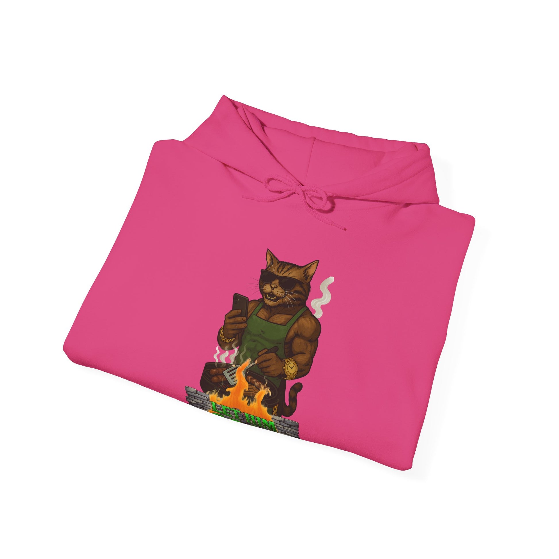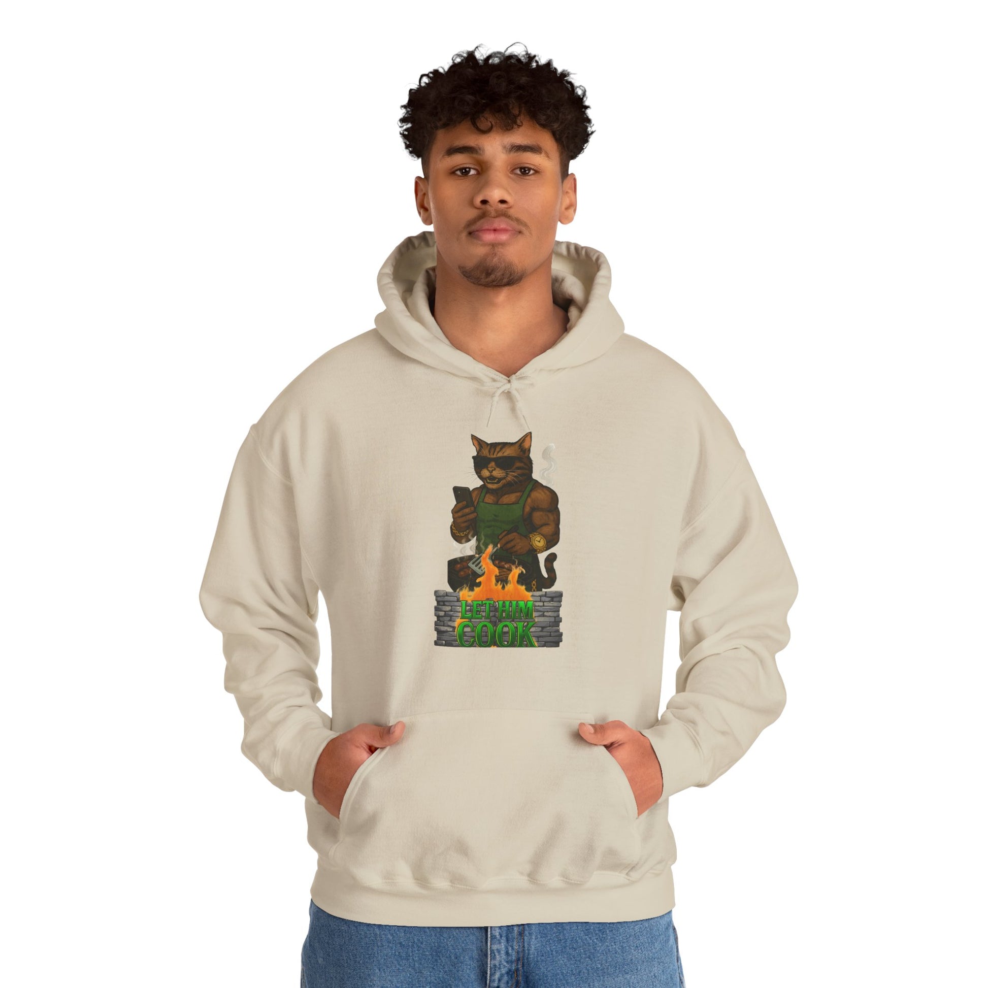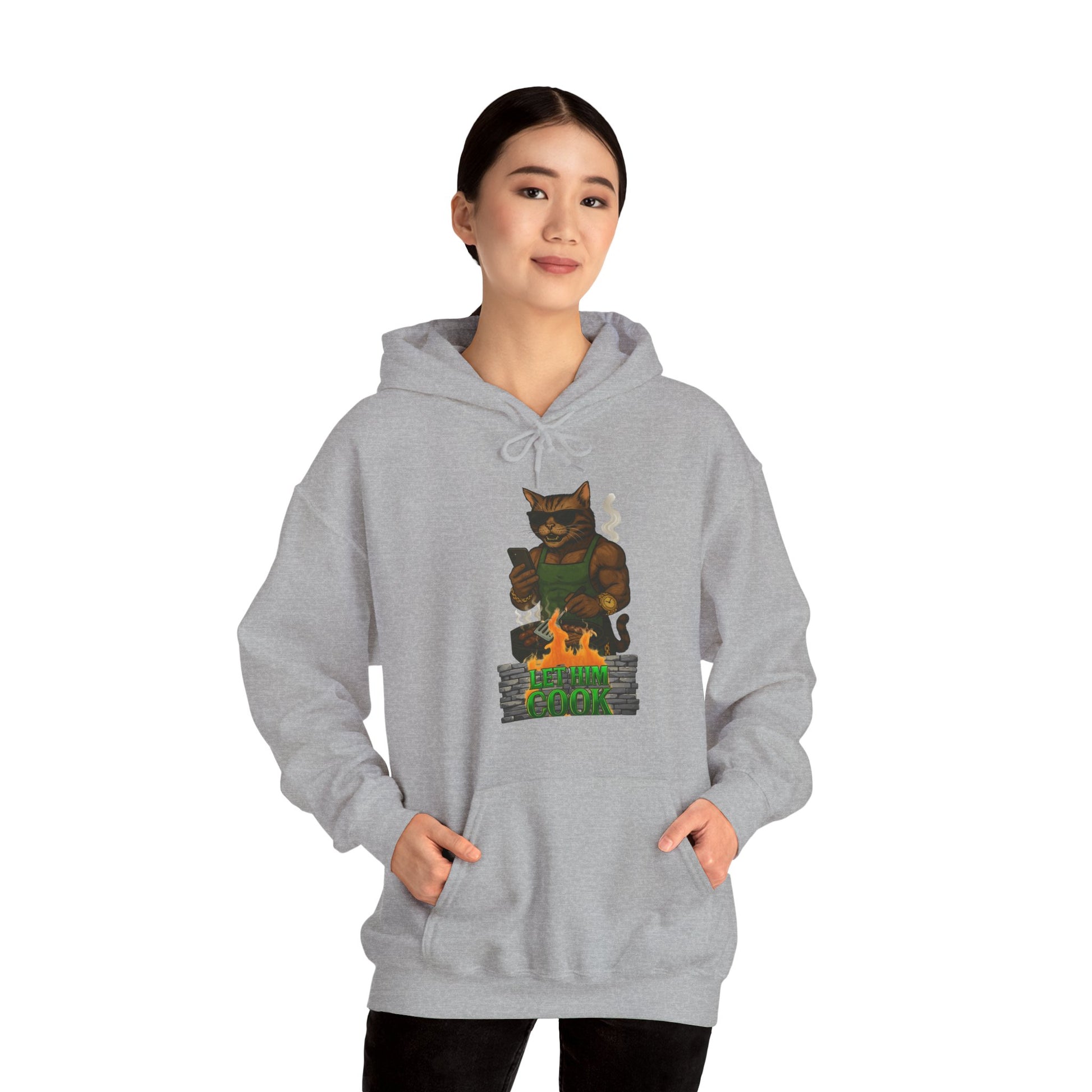 Let Him Cook Cool Cat Grillin' Sweatshirt | Unisex Hoodie for Cat Lovers, Funny Gift for Friends, Cozy Wear, Casual Outfit, Birthday and Holiday Gift