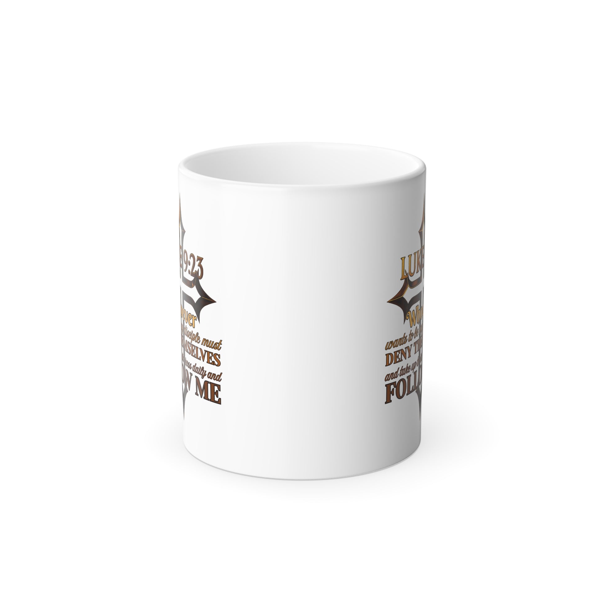 Luke 9:23 Color Morphing Mug with Inspirational Quote, Coffee Cup, Gift for Friends, Unique Kitchenware, Fun Drinkware for Home