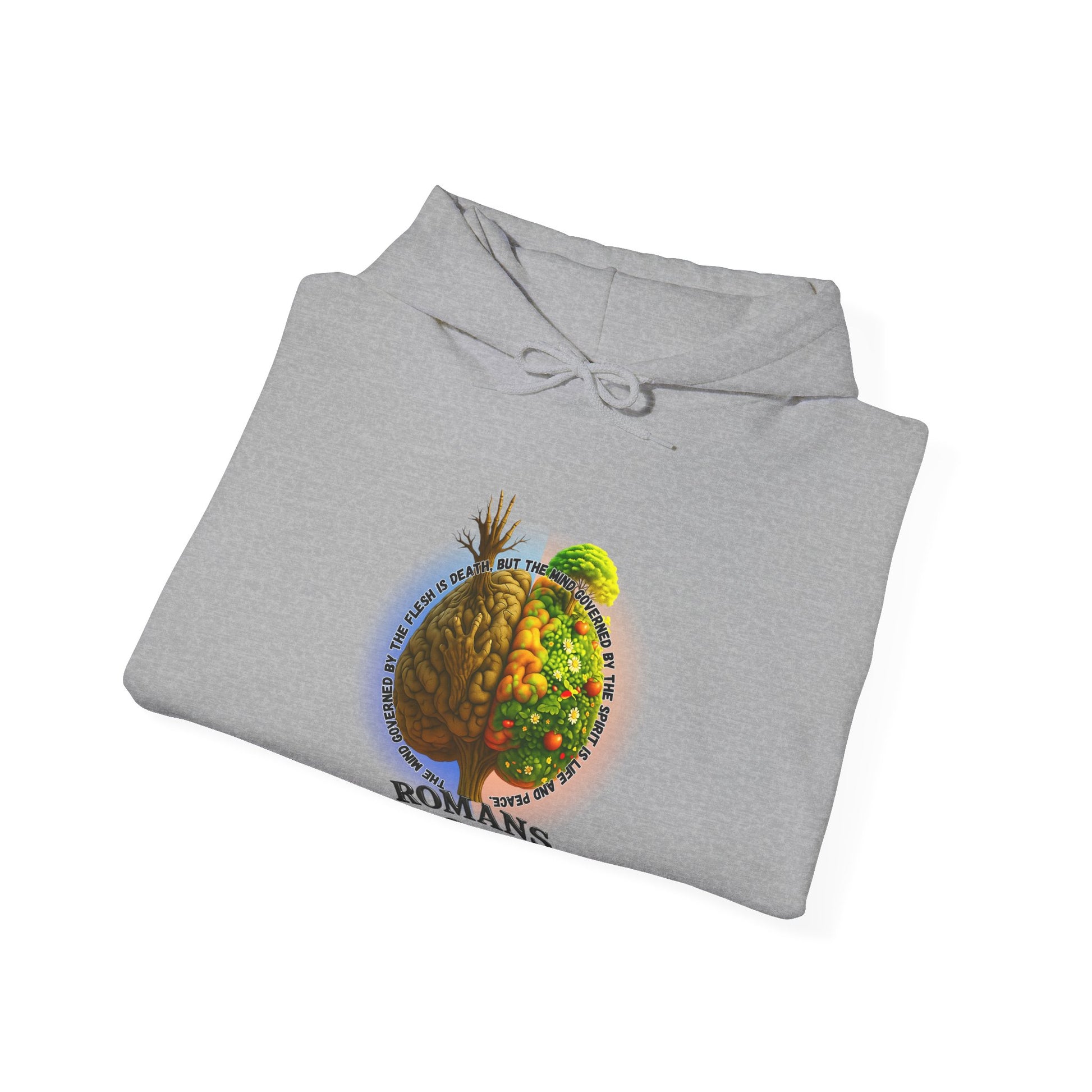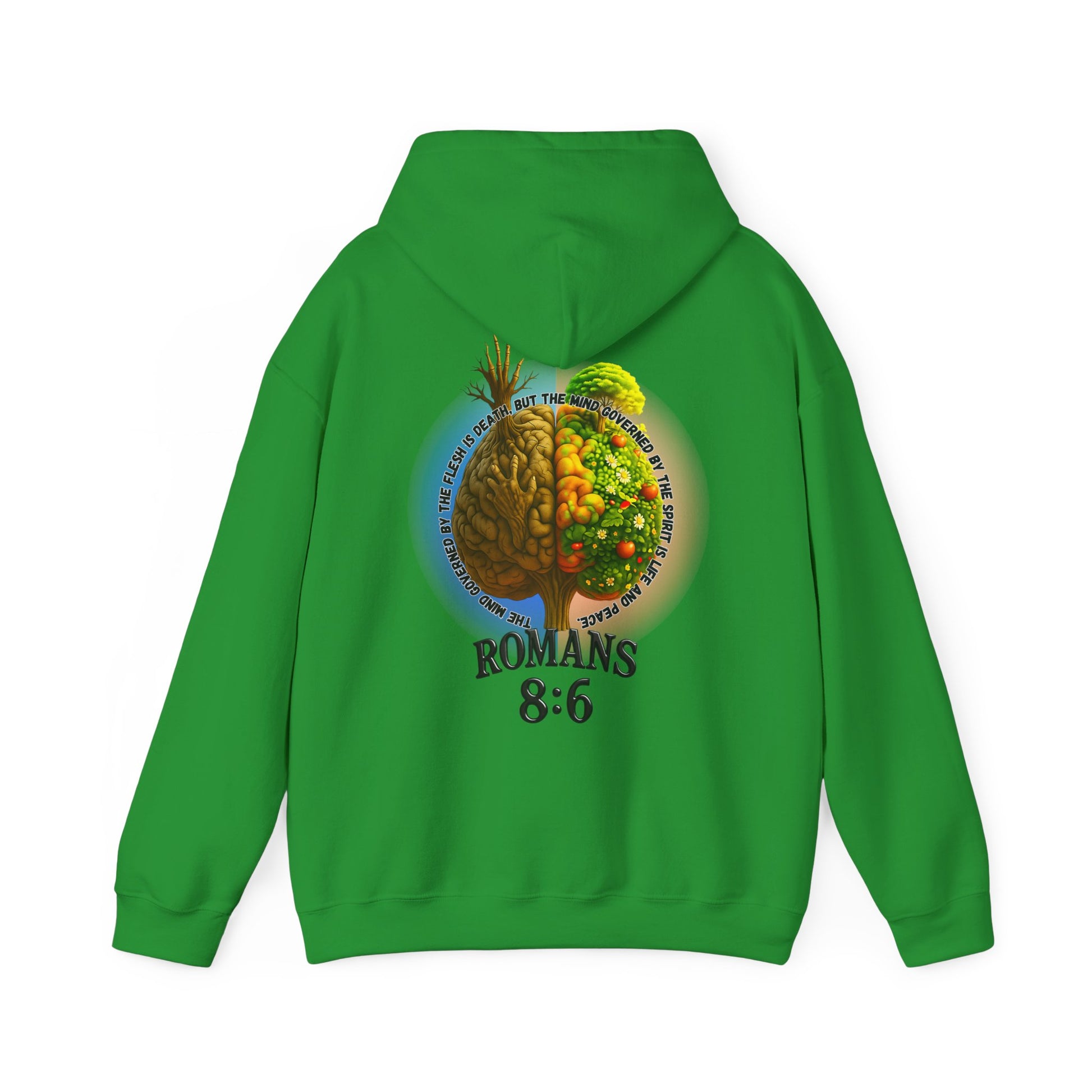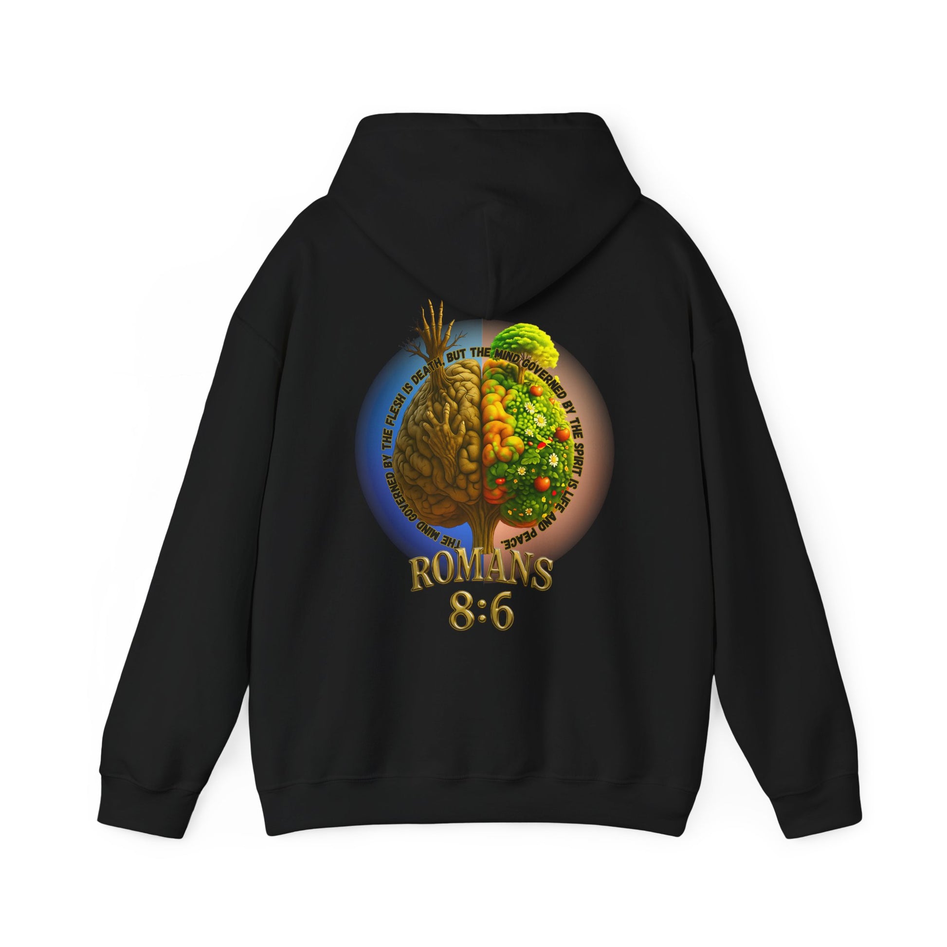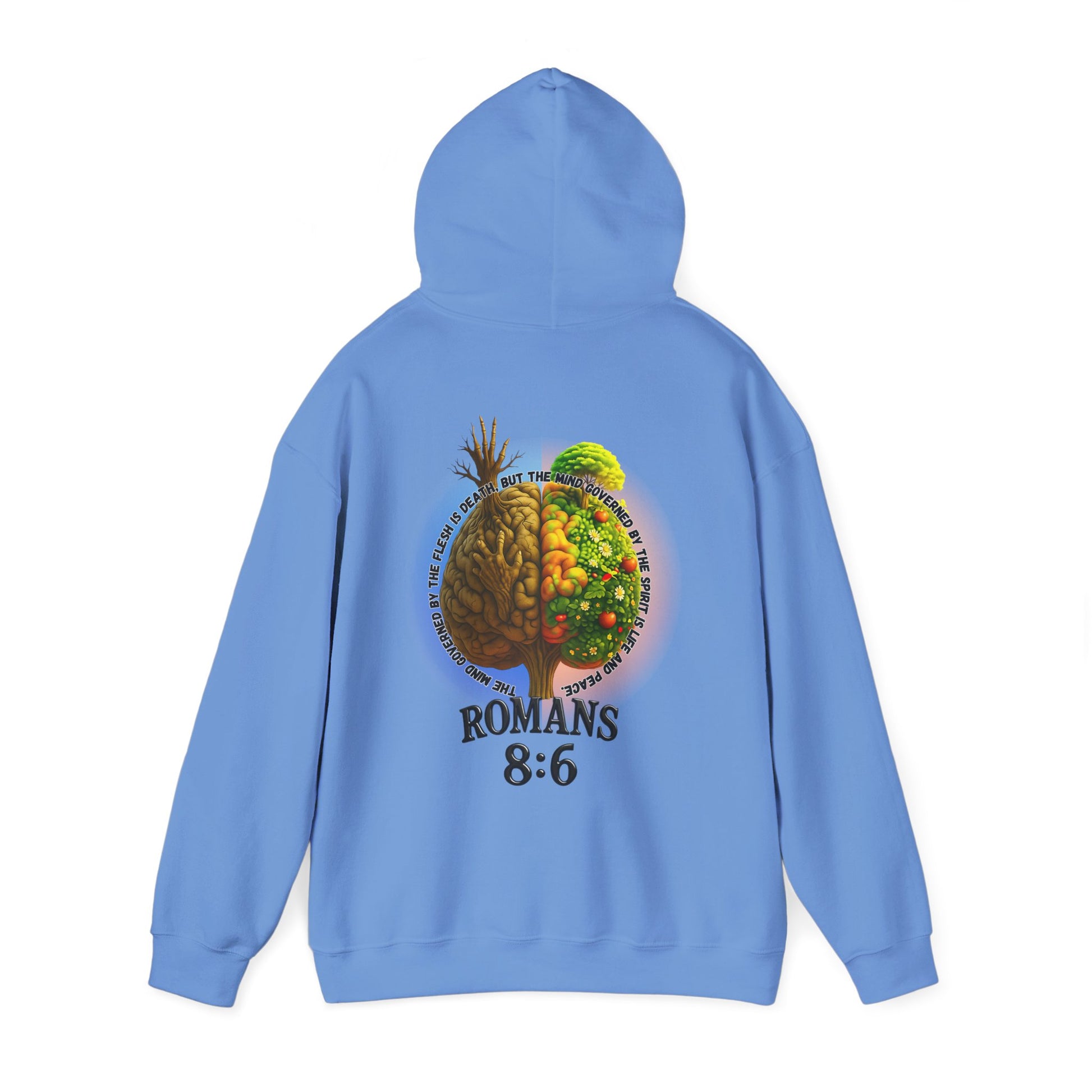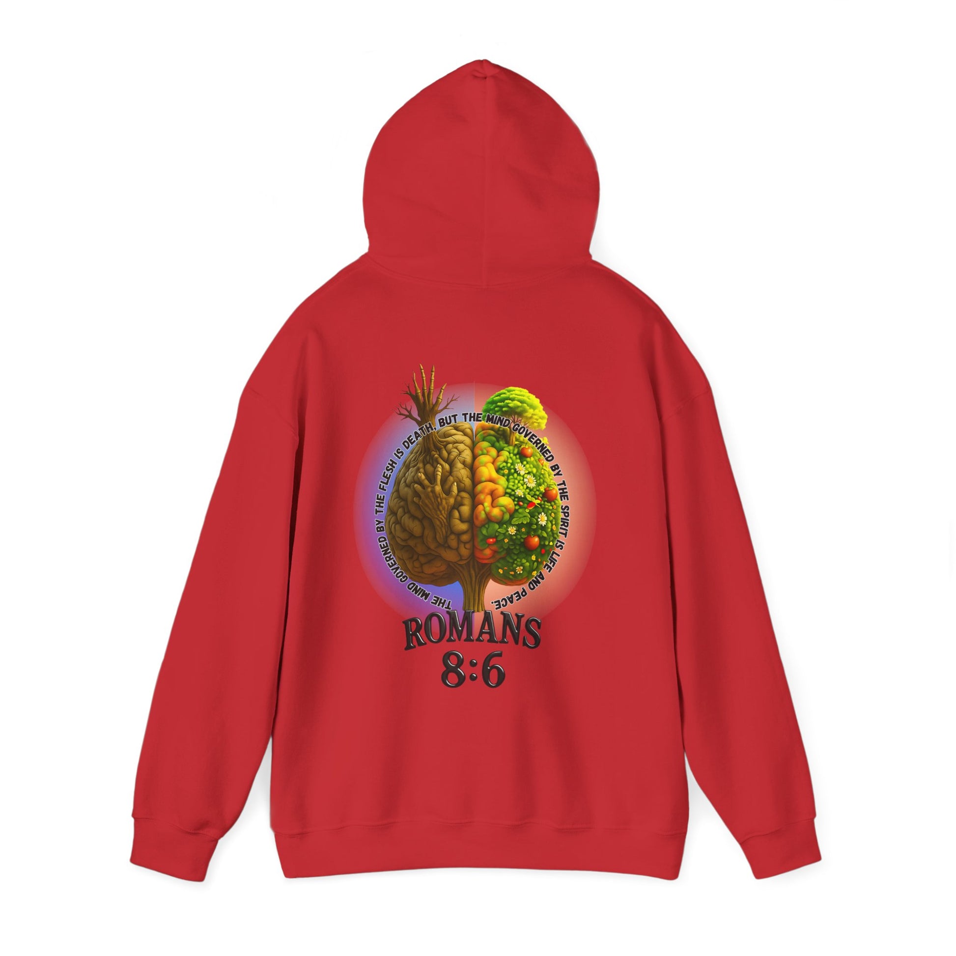 Romans 8:6, Inspirational Unisex Hooded Sweatshirt, Motivational Gift, Cozy Print, Spiritual Hoodie, Everyday Wear, Affirmation Clothing